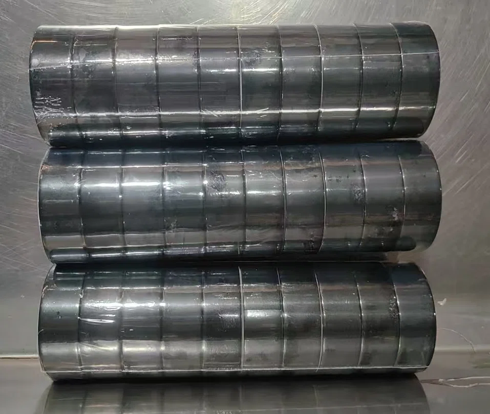 1. Klæbende tape påført glatte, blanke papiremballagekasser.
